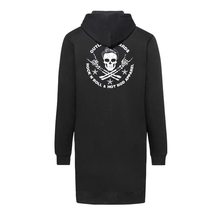 Originální a stylová dámská černá mikina Outlaw Bastards, dlouhá pod zadek, vzadu s kvalitním potiskem Outlaw Bastards, vpředu kapsa "klokanka" , stylové šňůrky s šachovnicí.
