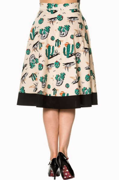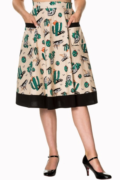 Sukně dámská s kapsami značky Banned , motiv retro, rockabilly, pin-up, letní, kaktusy, lebky, mexiko