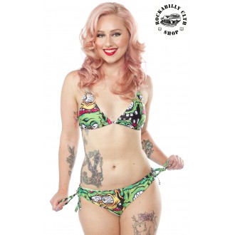 Dámské exkluzivní dvoudílné plavky - bikini Sourpuss Clothing z Ameriky, zelená , motiv comics, horror ..... ty prostě musíš mít ! Dodává Rockabilly clothing shop www.rocka.cz