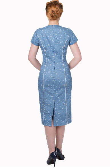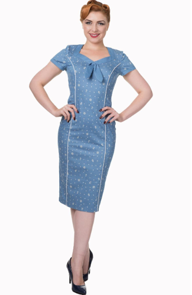 Dámské šaty Rockabilly Retro Pin Up Banned Alaska Blue Sweet Talker pencil Dress