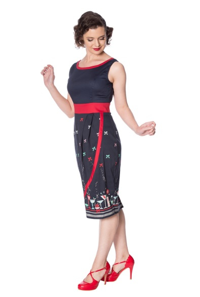 Dámské šaty Rockabilly Retro Pin Up Banned Christmas Cocktails Pencil Dress