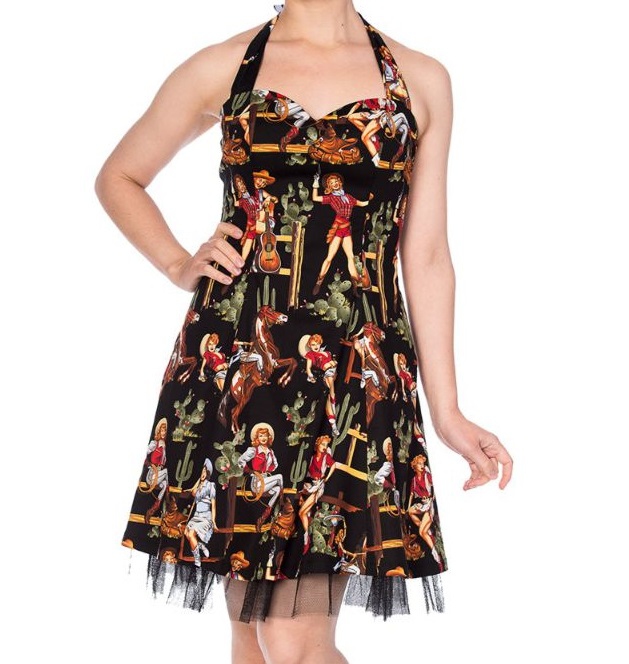 Dámské šaty Rockabilly Retro Pin Up Banned Cowgirl Halter Flare Dress Blk