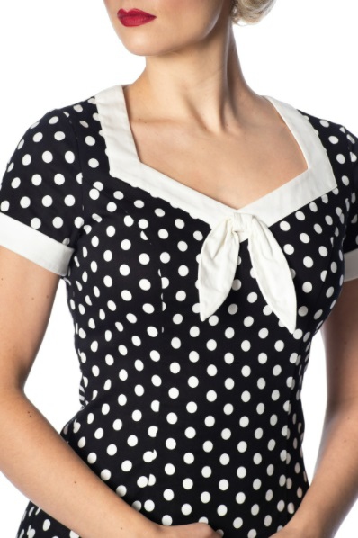 Dámské stylové černé puntíkované šaty značky Banned, retro, rockabilly, pin-up. Vzadu zip pro snadnější oblékání.. Dodává Rockabilly clothing shop www.rocka.cz