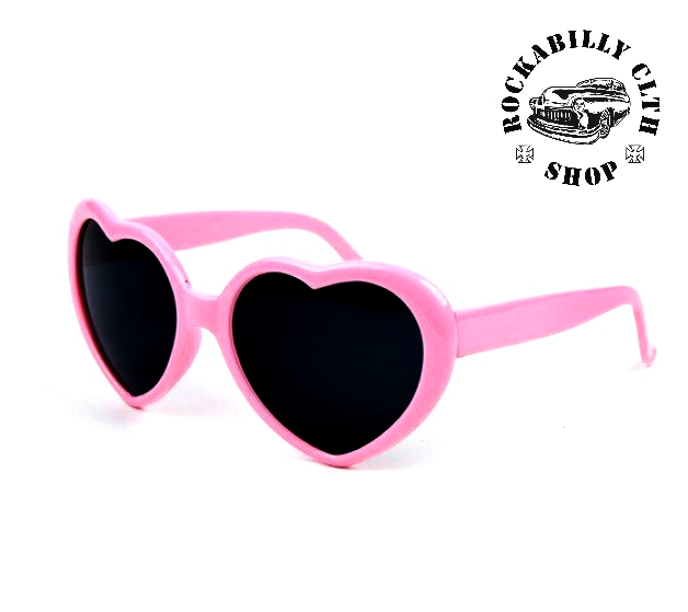 Sluneční brýle srdce, barva růžová, černá skla, parádní doplněk ke stylovému rockabilly - rock´n´roll oblečení. Dodává Rockabilly clothing shop www.rocka.cz