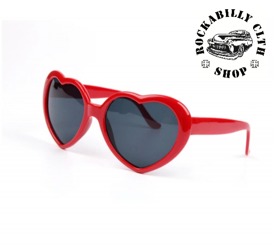 Sluneční brýle srdce, barva červená, černá skla, parádní doplněk ke stylovému rockabilly - rock´n´roll oblečení. Dodává Rockabilly clothing shop www.rocka.cz