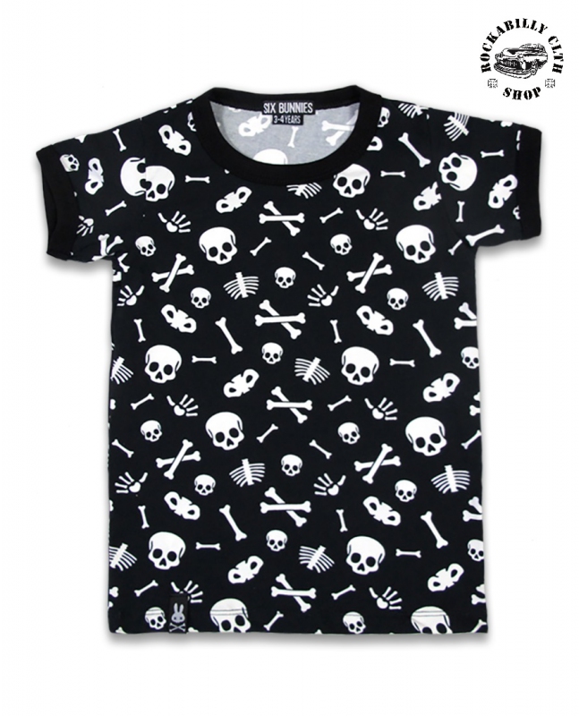 Originální černé dětské tričko Six Bunnies, 100% bavlna, motiv lebky, velikosti o 3 do 10 let