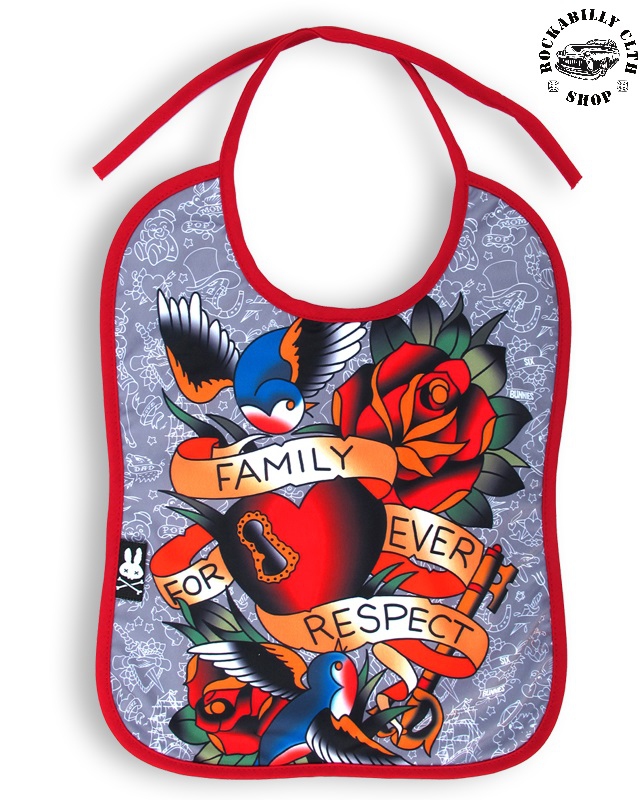Exkluzivní bryndáčky pro malé ďáblíky a cintaly, kvalitní produkt značky Liquor Brand, dodá Rockabilly Clothing Shop Praha.