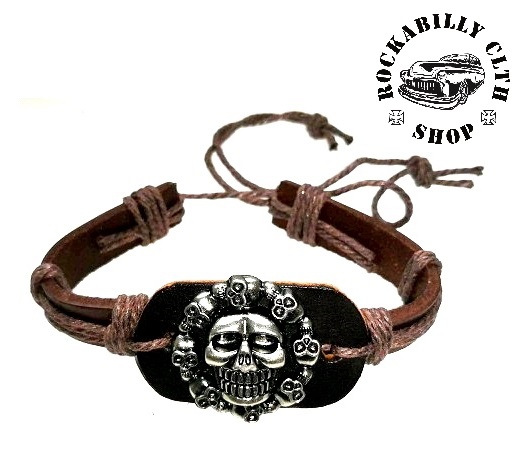 Kožený náramek lebky Rocka Bracelet Skulls Cirk