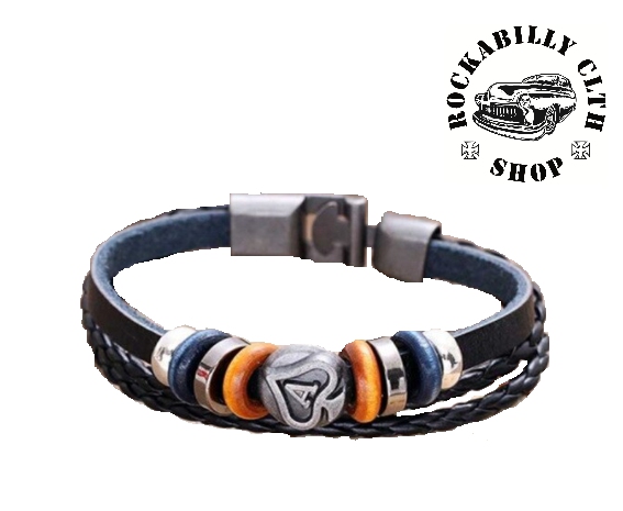 Kožený náramek černý se zapínáním, motiv poker karty, ručně vyráběný, kovové zapínání, parádní doplněk k oblečení. Délka 20,5 cm.