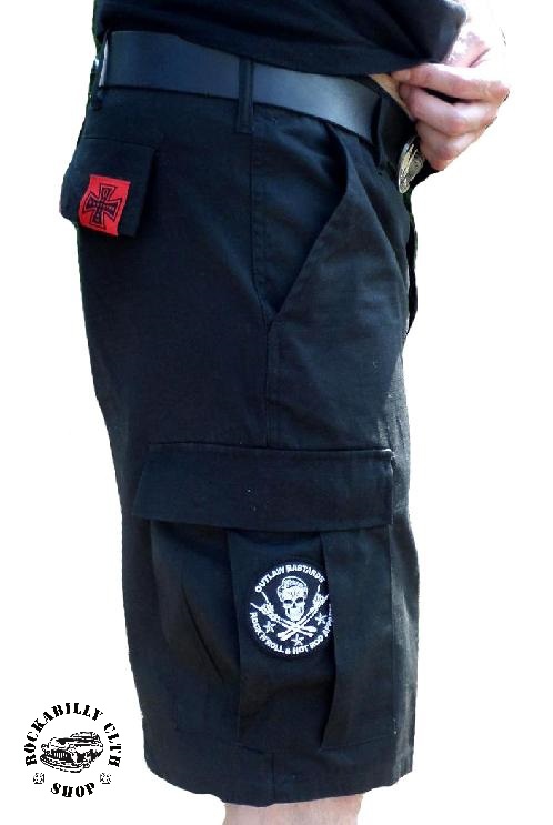 Kraťasy pánské Outlaw Bastards Rip Stop Skull Black