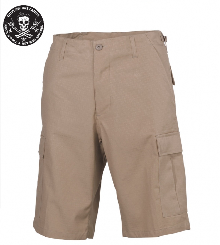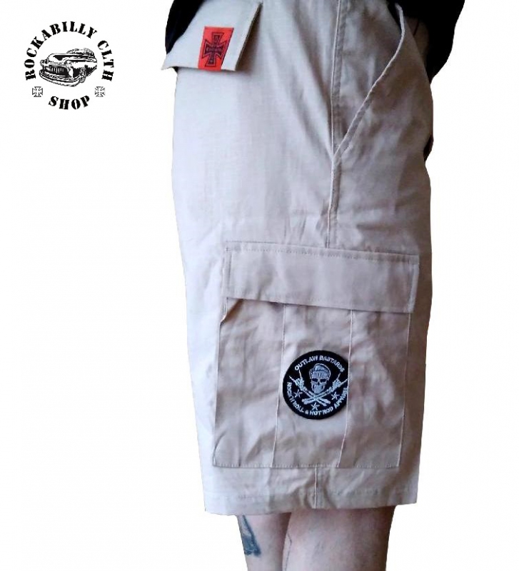 Kraťasy pánské Outlaw Bastards vyrobené z pevného materiálu s technologií Rip Stop (speciální prošívání zabraňující roztržení a dalšímu párání látky). Kraťasy mají 2 klasické všité kapsy, 2 zadní kapsy (zapínání na knoflíky) a 2 velké boční kapsy se zapínáním na knoflíky. Poklopec se zapíná také na knoflíky. Obvod pasu je možno upravovat pomocí bočních řemínků. Kraťasy jsou lehké a mají dlouhou životnost.