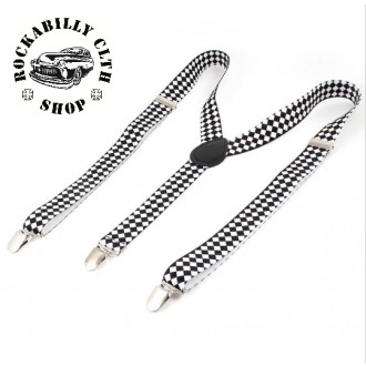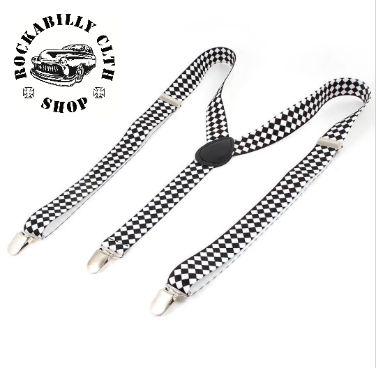 Uni kšandy s černobílým vzorem patří ke klasickým rockabilly - rock´n´roll doplňkům. Dodává rockabilly clothing shop praha, motiv šachovnice.