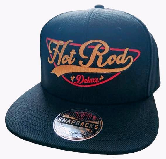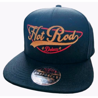 Exkluziv černá rockabilly - rock´n ´roll - hot rod - kustom kšiltovka snapback značky Outlaw Bastards, vzadu zapínání, vpředu výšivka HOT ROD, z boku výšivka Outlaw Bastads, dodává Rockabilly Clothing Shop Praha