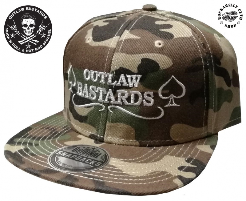 Exkluziv rockabilly - rock´n ´roll - hot rod - kustom maskáčovaná kšiltovka značky Outlaw Bastards, vpředu výšivka, dodá Rockabilly Clothing Shop Praha www.rocka.cz