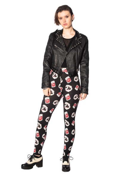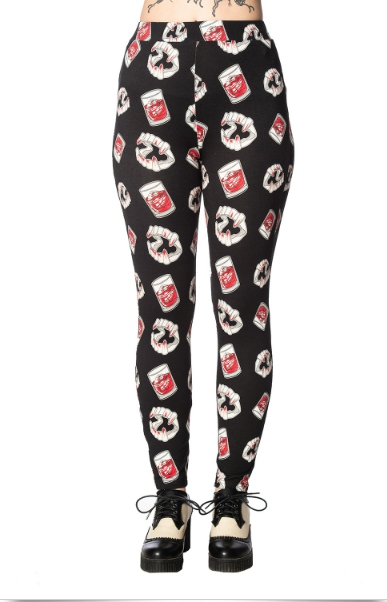 Exkluzivní dámské kalhoty - legíny s celoplošným potiskem Banned, kalhoty jsou elastické, dodává Rockabilly Clothing Shop Praha, motiv old school, tattoo, horror, rockabilly, psychobilly