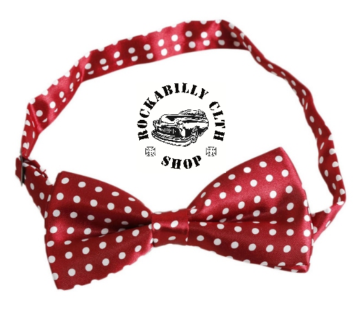 Motýlek červený s puntíkem patří ke klasickým rockabilly - rock´n´roll doplňkům. Exkluzivní motýlky a kravaty dodává Rockabilly Clothing Shop .