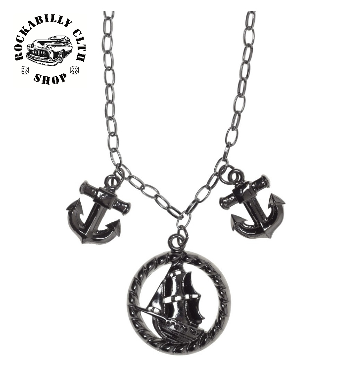 Náhrdelník Retro Rockabilly Sourpuss Clothing Necklace Tall Ship Charm