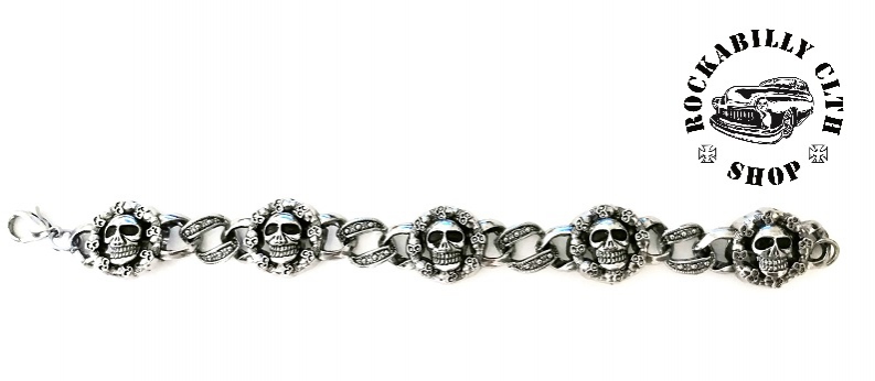 Náramek Lebky Rocka Skulls Steel Bracelet II