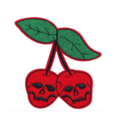 nášivka / nažehlovačka červená, motiv lebka, třešničky, rozměry cca: šířka 8 cm, výška 8 cm