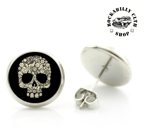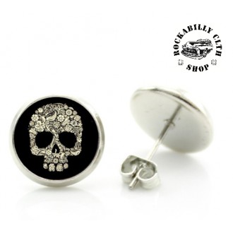 Náušnice kulaté, motiv lebka, perfektní doplněk na párty či oslavu. Průměr 14mm. Cena za pár.