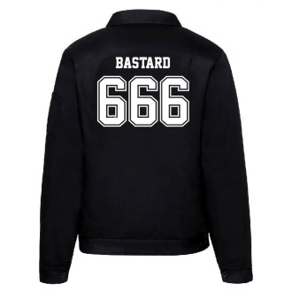 vzadu kvalitní potisk 666 Bastard, zapínání na zip, vpředu nášivka Outlaw bastards