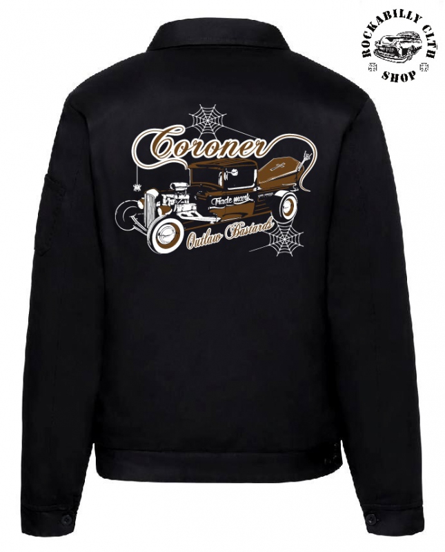Pánská jarně - podzimní bunda značky Outlaw Bastards s potiskem na zádech a výšivkou vpředu. Složení: 100% bavlna. Motiv hot rod coroner.