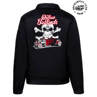 Pánská jarně - podzimní bunda značky Outlaw Bastards s potiskem na zádech a výšivkou vpředu. Složení: 100% bavlna. Motiv hot rod coroner.