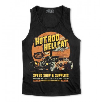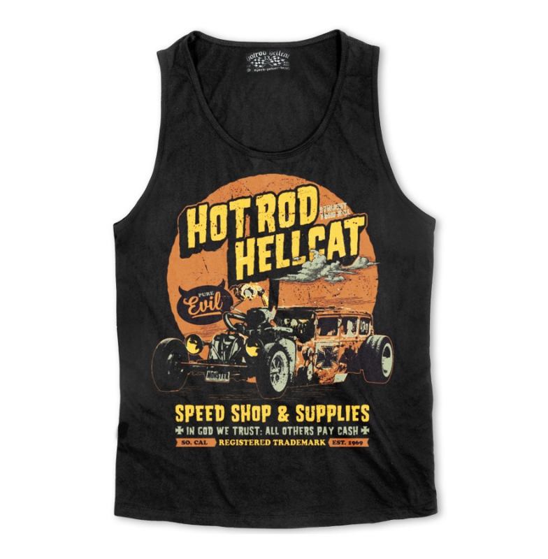 100% bavlněné černé pánské tílko Hotrod Hellcat s kvalitním potiskem, motiv Hotrod Hellcat , hotrod, kustom, motor, rockabilly, punk, dodává Rockabilly clothing shop www.rocka.cz