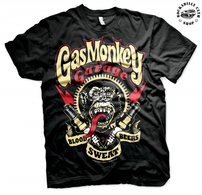 Originální a stylové bavlněné tričko z amerického Texasu od již dobře známé firmy Gas Monkey Garage, která produkuje parádní oblečení s hot rod, kustom kulture a rockabilly tématikou, vpředu kvalitní potisk, 100% bavlna, barva černá