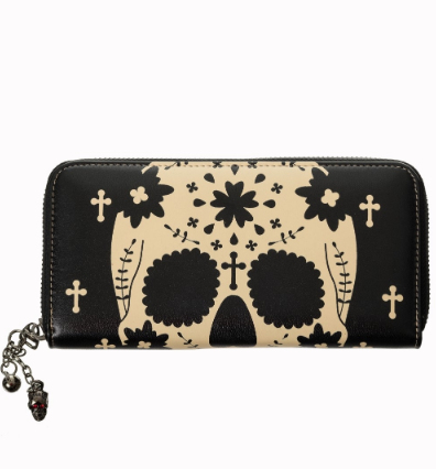 Peněženka černá známé exkluziv značky Banned Apparel, dodá Rockabilly Clotihng Shop Praha. Motiv rockabilly, retro, pin-up, horror, love, sugarskull. Uvnitř 8x kapsička na kreditky, zapínací kapsa na drobáky, 2 kapsy na papírové bankovky.
