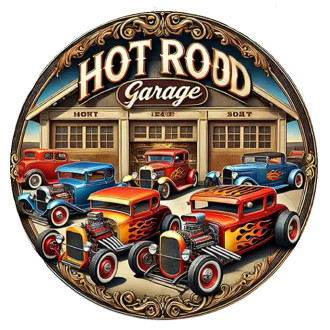 Klasická americká kulatá plechová US retro cedule, hot rod, chopper, pin up, kustom kulture biker styl, oldschool, speed and power, průměr 20 cm, perfektní doplněk do bytečku, baru, garáže nebo třeba i kanceláře. Dodává Rockabilly Clothing shop www.rocka.cz