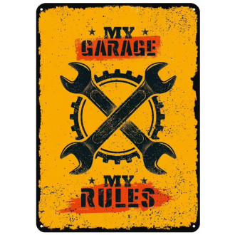 Plechová retro americká US cedule Rocka My Garage My Rules I.