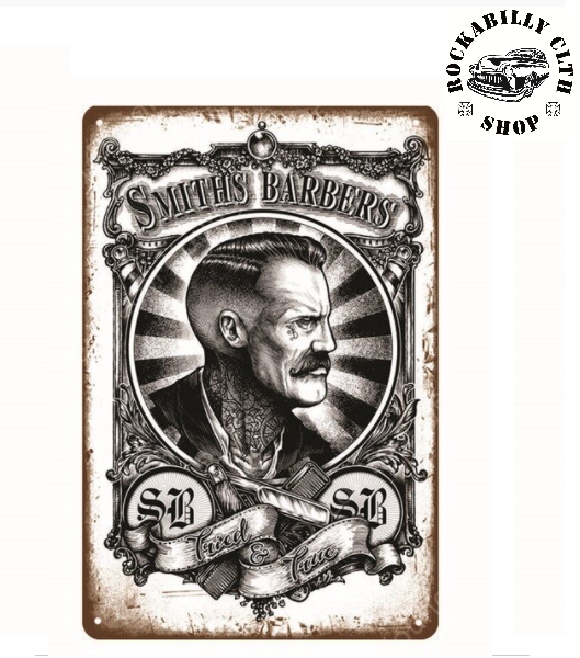 Plechová retro americká US cedule Rocka Smiths Barbers