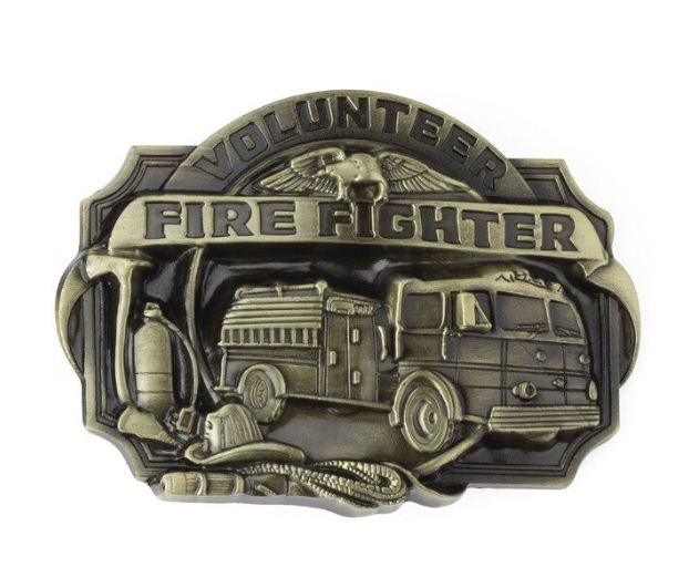 Kovová přezka hasiči USA, patří ke stylovým doplňkům k oblečení s rockabilly, chopper, punk, hot rod, rat rod a kustom kulture tématikou. Kovová výměnná přezka určená pro pásky přizpůsobené pro tento účel, přezka je opatřená poutkem a zapínacím kolíkem.