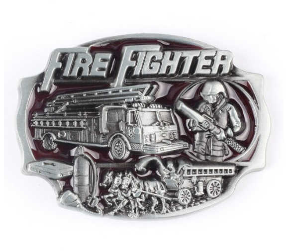 Kovová přezka hasiči USA, patří ke stylovým doplňkům k oblečení s rockabilly, chopper, punk, hot rod, rat rod a kustom kulture tématikou. Kovová výměnná přezka určená pro pásky přizpůsobené pro tento účel, přezka je opatřená poutkem a zapínacím kolíkem.