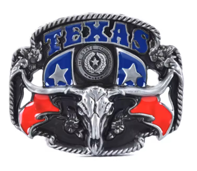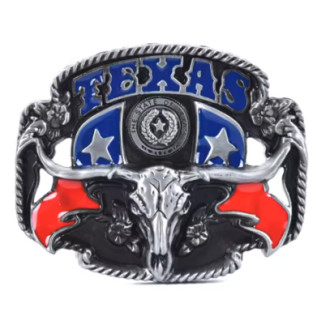 Kovová přezka Texas skull patří ke stylovým doplňkům k oblečení s rockabilly, chopper, punk, hot rod, rat rod a kustom kulture tématikou. Kovová výměnná přezka určená pro pásky přizpůsobené pro tento účel, přezka je opatřená poutkem a zapínacím kolíkem.