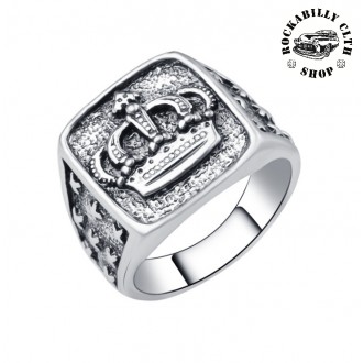 Stříbrný prsten s horrorovým motivem je parádním doplňkem pro každou příležitost. Motiv královská koruna, z boku hvězdy, horror. Dodává Rockabilly clothing shop www.rocka.cz