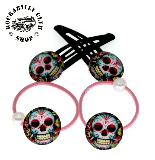 Sada sponek / gumiček do vlasů lebky Rockabilly Sugar Skull