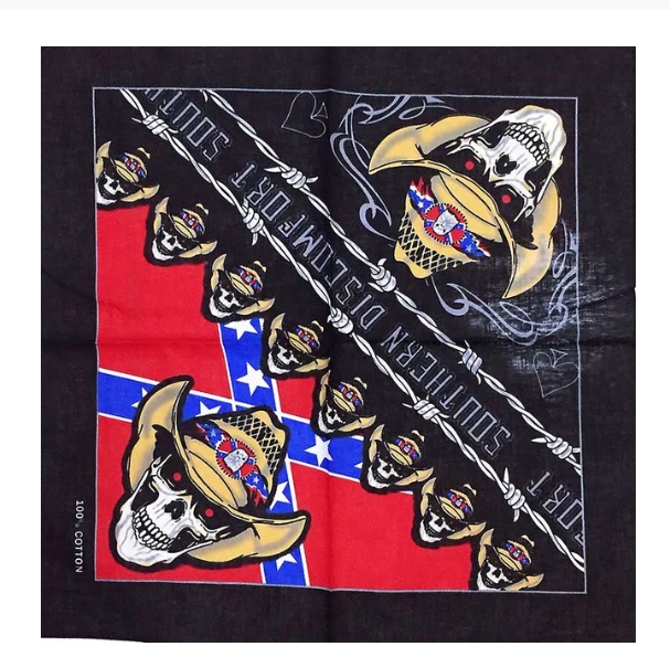 Rockabilly šátek / bandana rozměr 55 x 55 cm, 100% bavlna. Dodává Rockabilly Clothing Shop Praha. Rockabilly - Rock´n ´roll - šátek / bandana, vhodný doplněk do vlasů k šatům. Motiv jižanský, lebky.