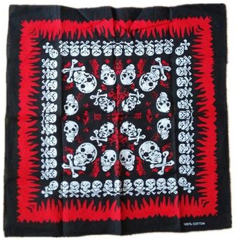 Rockabilly šátek / bandana rozměr 55 x 55 cm, 100% bavlna. Motiv červený plamen, lebky. Dodává Rockabilly Clothing Shop Praha. Rockabilly - Rock´n ´roll - šátek / bandana, vhodný doplněk do vlasů k šatům.