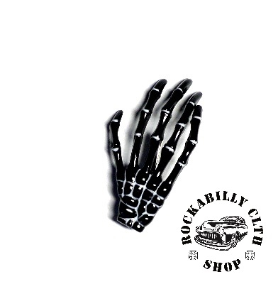 Originální horror černá sponka do vlasů, ideální doplněk na párty. Velikost 7 cm. Dodává Rockabilly Clothing Shop Praha. Motiv kostra.