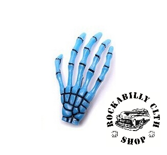 Originální horror modrá sponka do vlasů, ideální doplněk na párty. Velikost 7 cm. Dodává Rockabilly Clothing Shop Praha.