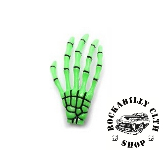 Originální horror zelená sponka do vlasů, ideální doplněk na párty. Velikost 7 cm. Dodává Rockabilly Clothing Shop Praha.