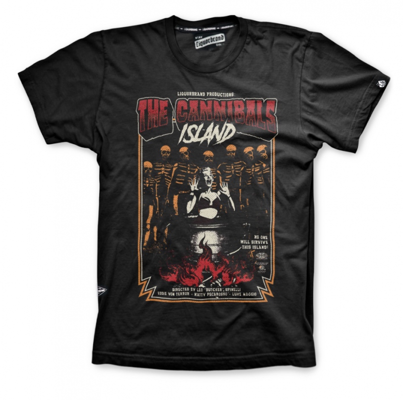 100% bavlněné exkluziv pánské černé rockabilly - rock´n ´roll - tattoo tričko Liquor Brand, vpředu s kvalitním potiskem, motiv muerta, love, lebka, old school tattoo, dodá Rockabilly Clothing Shop Praha